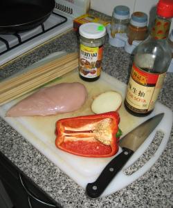La versión que hago es, teóricamente, sasami (ささみ), que es pollo sin piel, pechuga, con un poco de cebollita, a la plancha y con salsita teriyaki, pero que pasa... ¿a alguno le anda bien el gas? no , a mi no, no hay gas, así que tengo que inventar algo para que se cocine bien, solución: sellar primero en aceite, mezclar con la salsa después.