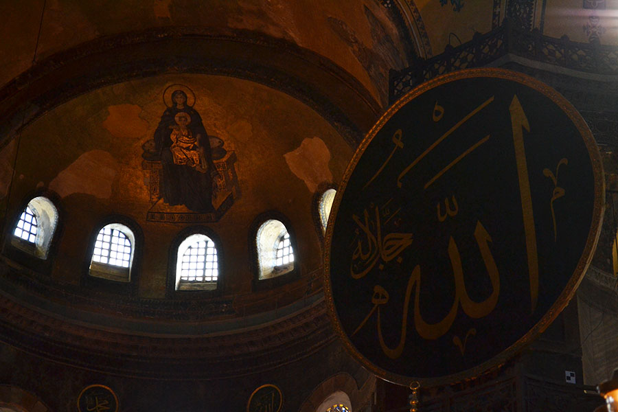 Actualmente es un museo que combina ambas religiones y en sus paredes se pueden encontrar murales que fueron hábilmente cubiertos durante la invasión musulmana cuando Mehmed II ordenó la "conversión". Por suerte, para la historia de la humanidad, no destruyeron todo, lo taparon con seda y pintaron arriba. Es por eso que hoy podemos ver textos del Corán al lado de un Cristo bizantino.