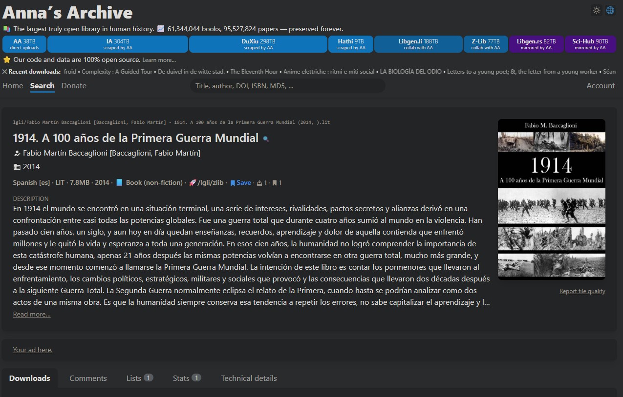 Tal es así que me puse a ver si había algún libro mío allí y había como diez enlaces de mi libro de la Primera Guerra Mundial 😁 y juro que me sentí honrado.