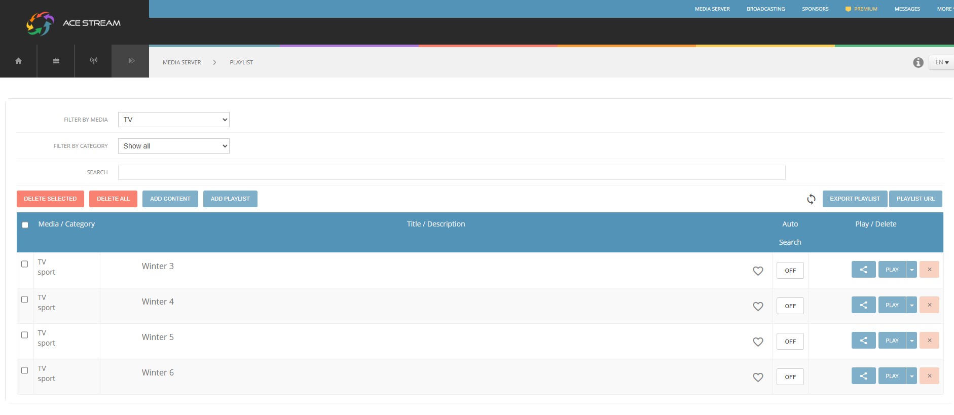 En la sección de Media Server podemos crear Playlists con múltiples hash como si fuesen canales de TV,