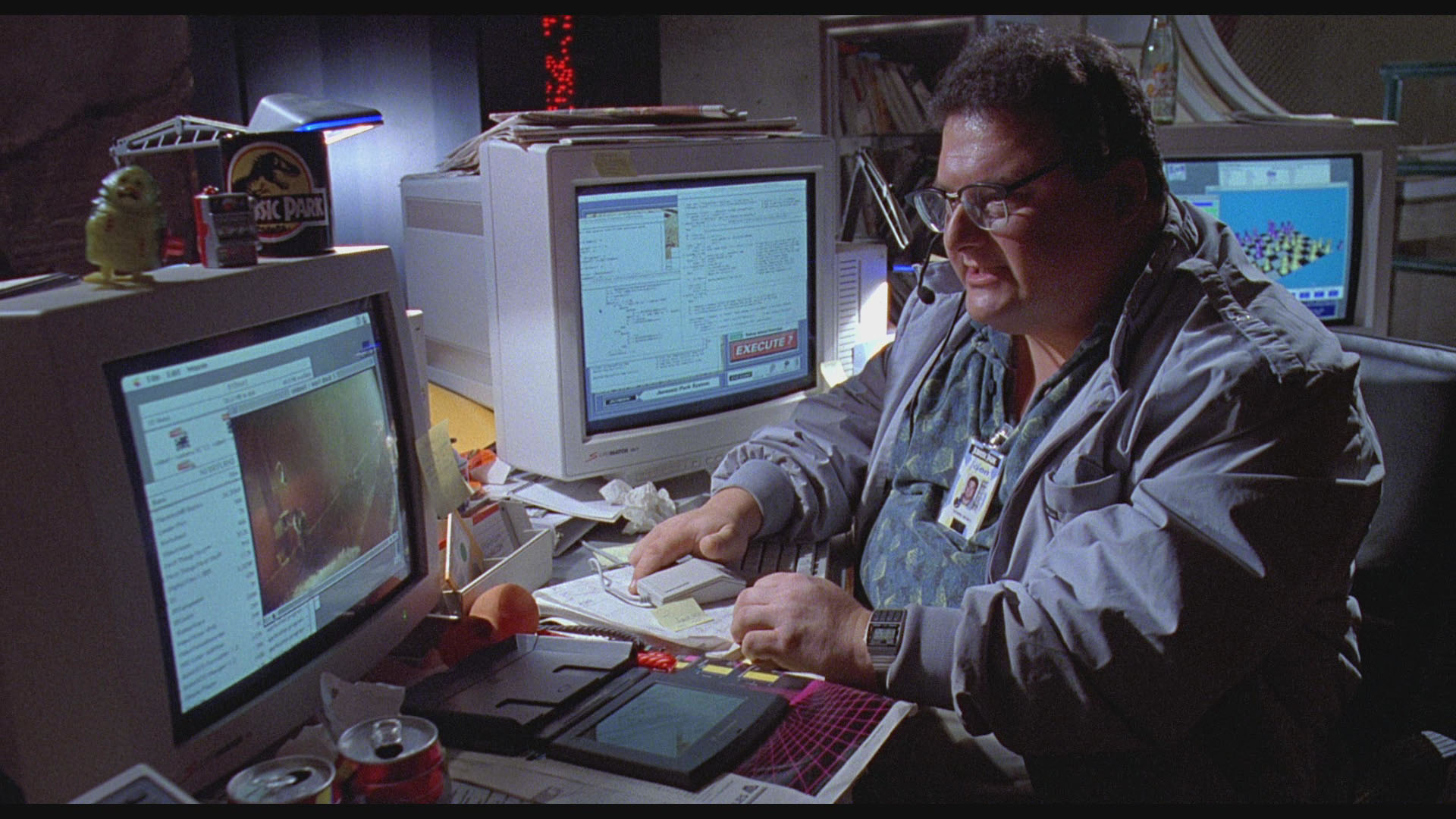 Y si ven esta famosa escena de Jurassic Park... noten qué hay justo en el escritorio, ahí, mirándonos con desgano, sabiendo que no iba a llegar a ningún lado 😋