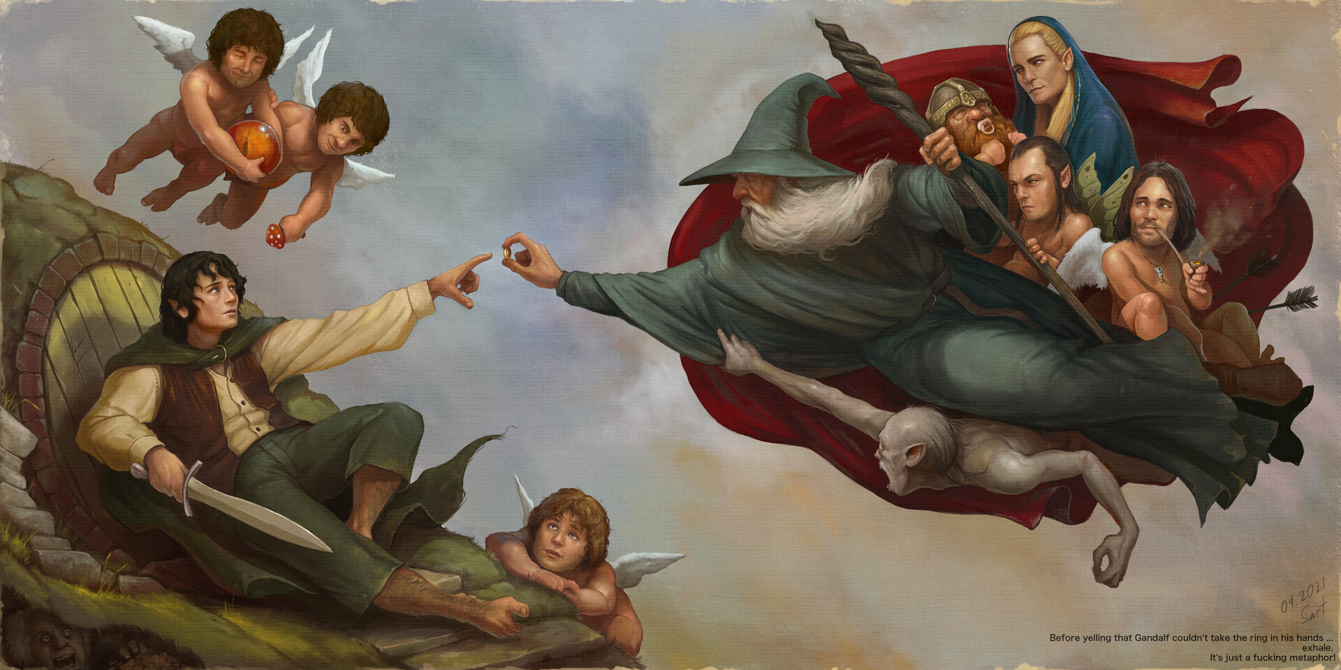 Fabio, el rubio de la primera imagen con lentes negras es Turner del ¿clásico? de MegaDrive/Genesis llamado Comix Zone. Apenas vi tu post lo primero que me llamó la atención fue eso, tal vez haya otras referencias mezcladas además de LoTR. Saludos! PD: https://en.wikipedia.org/wiki/Comix_Zone