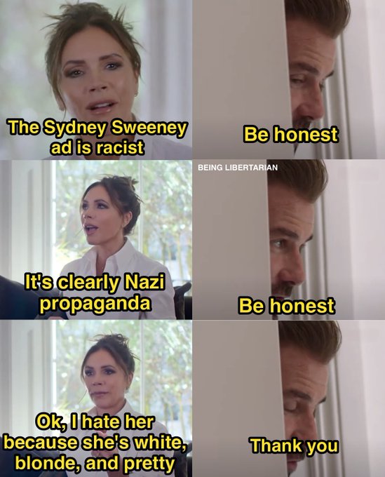 Acusar a quien se jacta de sus ojos o su pelo no es nazi, no es fascista, no es eugenesia, es... bueno, pedante, pero más allá de eso, si tan "woke" sos, no debería molestarte porque bien sabés que la verdadera belleza reside en tu sobrepeso, tu fragilidad de copito de nieve y tu independencia basada en cafés y rolls de canela 😅