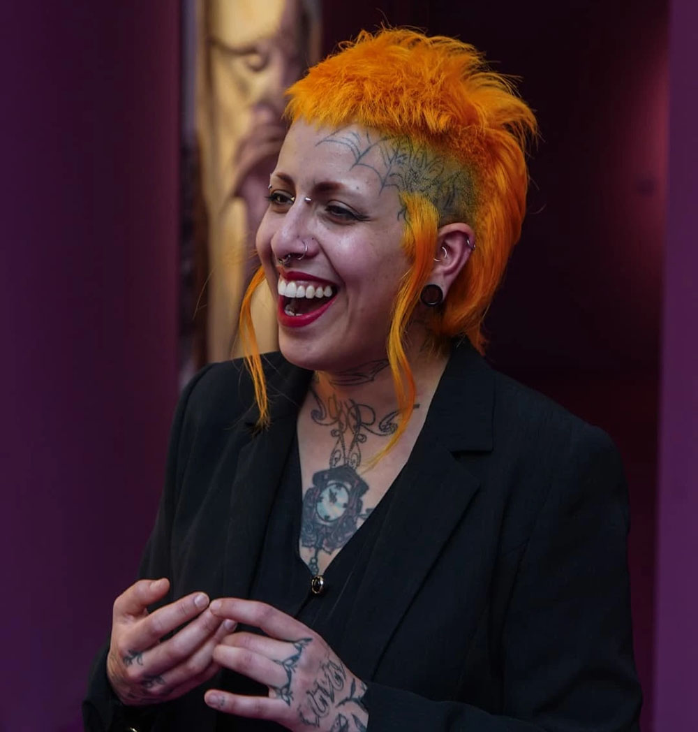 La "artista" se hace llamar "Carrie Puzzle", su nombre es Carrie Bencardino y más allá de las críticas que los menos sagaces realizarán por su aspecto personal neo-punk, la realidad es que no es muy respetuosa de la obra que dice haberla "inspirado":